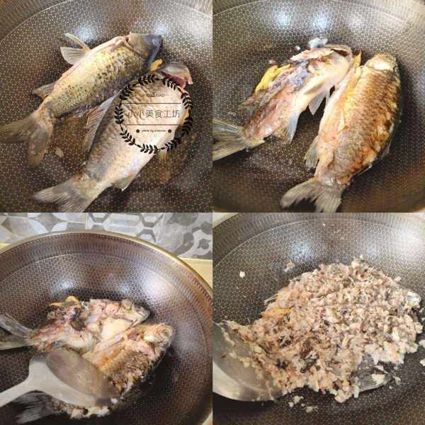 1、將鯽魚處理幹凈,放入油鍋中煎至兩面金黃,然後用鍋鏟搗碎,搗得越碎越好。