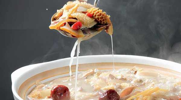 將不銹鋼桶底放6片竹籬,倒入水75千克,下入清洗幹凈的牛雜,大火燒開,打除浮沫,下入花椒150克,幹薑片300克,白胡椒150克,草果10顆,小茴香30克,蔥、鮮薑、朝天椒各100克,鹽500克,持續中火煮4小時,再加入中藥材料包(桂圓肉、淮山各15克,黨參、紅棗各40克,當歸20克,枸杞30克,黃芪、陳皮各10克,白芷5克),再煮1.5小時-2小時,撈出去骨放涼備用。起菜時取牛雜改刀,裝入湯煲中,再將牛雜湯燒沸,澆入湯煲內即可。