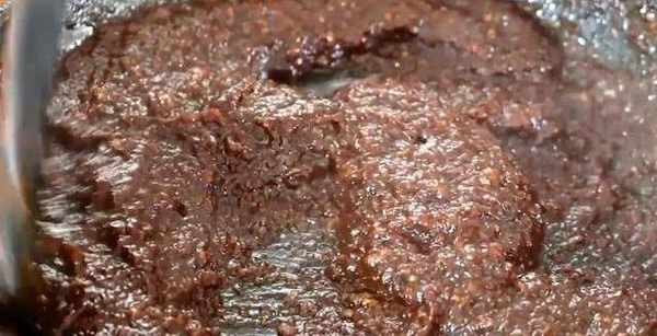 5.慢慢的裡面的水分熬幹瞭的時候已經變得比較濃稠瞭,而且我們再次攪拌的時候也會變得比較吃力瞭,將鍋中的薑汁攪拌變成濃稠的狀態就可以瞭。整個過程用時10多分鐘的時間,所以我們需要有耐心,不停的去翻攪它們。