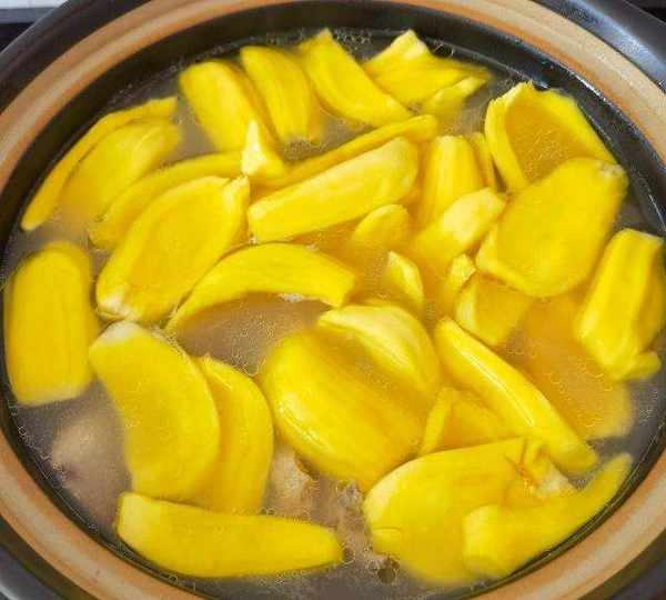 第3步、加入菠蘿蜜果肉,再中火煲10分鐘。