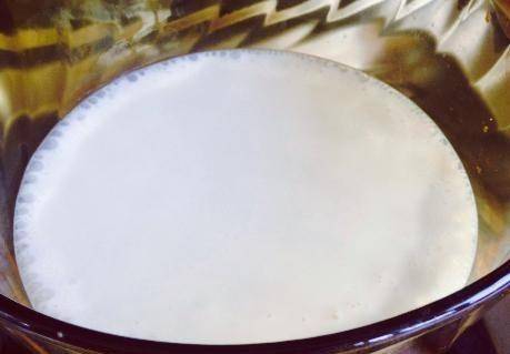 3、註意牛奶倒入薑汁時,薑汁要再次攪拌,使牛奶和薑汁充分結合,達到凝固的效果。