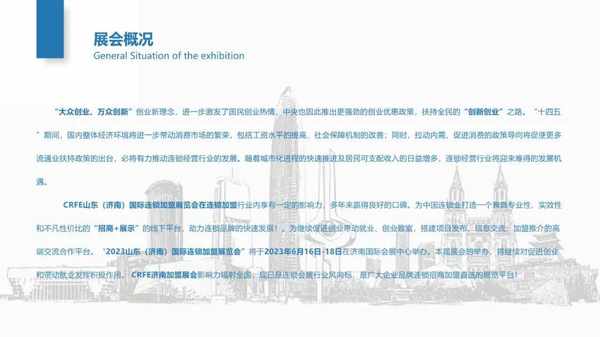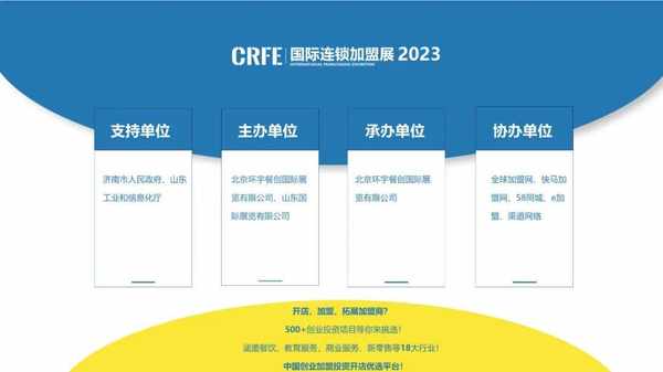 CRFE連鎖加盟展覽會也將為山東經濟發展出一份力,就在今年六月,CRFE國際連鎖加盟展覽會將於濟南國際會展中心隆重召開!