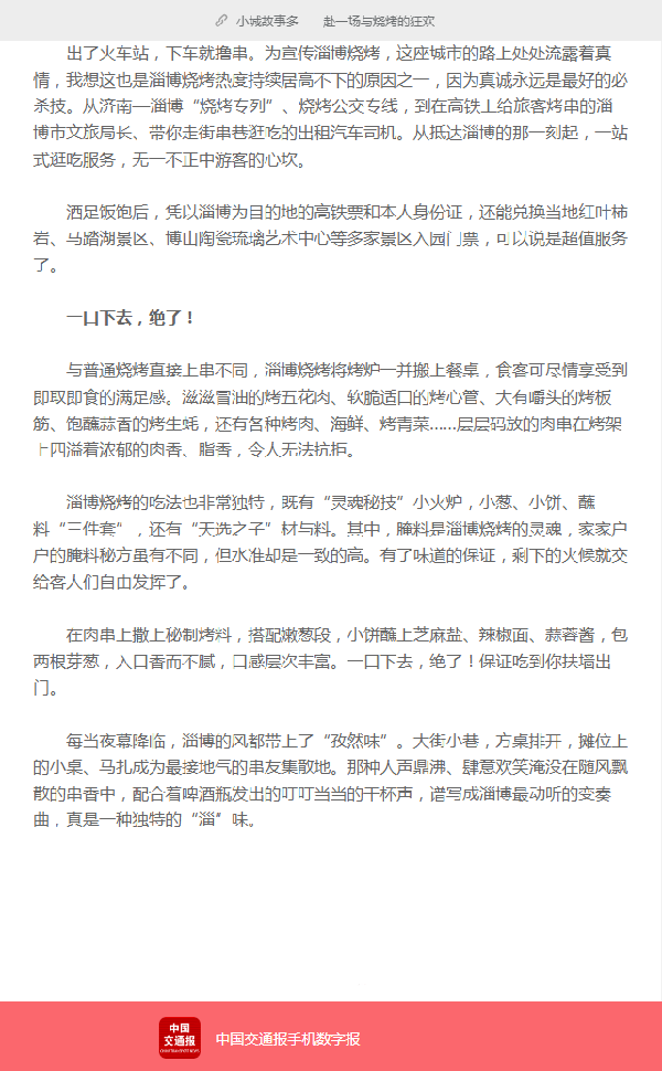 這個周末,相約體驗著淄博燒烤的魅力。太陽落山後,室外攤位上的小桌馬紮成為最接地氣的串友集散地。那份人聲鼎沸,那種肆意彌漫在空氣裡的串香,加之叮叮當當的啤酒瓶撞擊聲,也變成瞭淄博燒烤最浪漫的事。