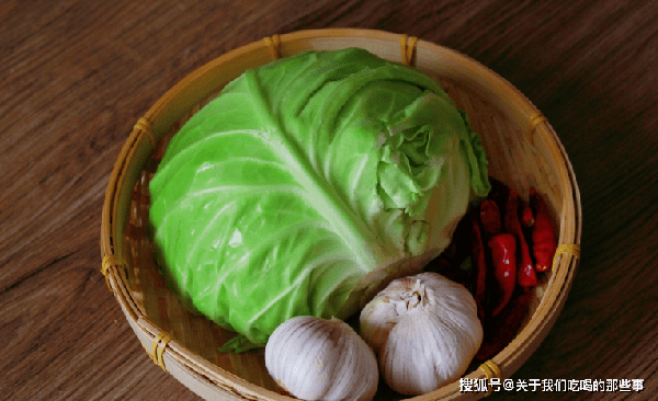 準備包菜、蒜瓣、幹辣椒、小米椒、花椒、陳醋、生抽、食用油、蠔油、白糖。