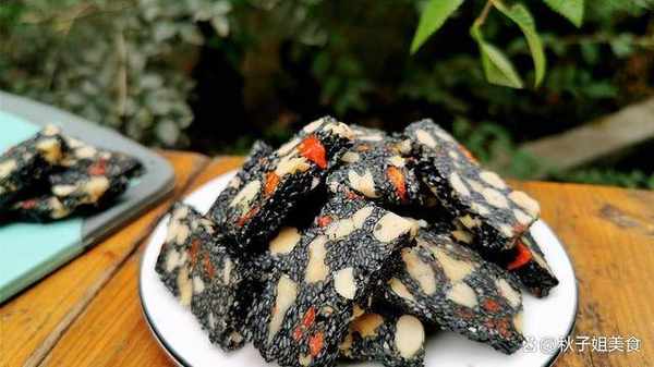 1、炒熟的花生、核桃各100克,熟黑芝麻300克,40克枸杞,把它們混合均勻。鍋裡倒25克清水,200克麥芽糖,白砂糖70克,開中火熬到糖漿能拉絲就熬好關火瞭。把混合好的黑芝麻和幹果加進來,迅速的翻拌均勻。