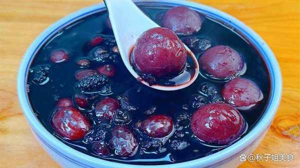 3、紫薯切成薄片,大火蒸15分鐘,加入30克白糖,壓成紫薯泥,再加入200克糯米粉。揉成光滑的面團,最後搓成小圓球。鍋中水燒開,把紫薯丸子放入鍋中煮熟。控水撈出過涼。黑豆和黑米煮熟瞭。再把紫薯丸子倒入鍋中,煮至入味。就可以出鍋瞭,五黑丸子湯就做好瞭。