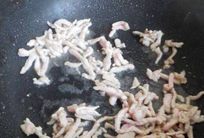 第五步,小火炒出香味後,放入蔥薑和蒜片,爆炒出香味,放入牛肉絲,炒勻後,加上豆瓣醬和生抽調味,翻炒均勻後,放入蘿卜絲和青椒絲,炒勻即可出鍋。