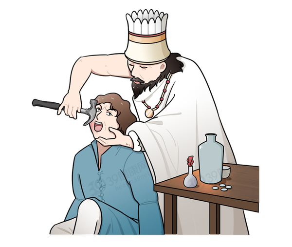 是將一根燒紅的鐵棒伸進病人嘴裡
