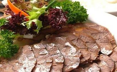 3、原料選擇、修整。選用經獸醫衛生檢驗合格的優質牛肉,除去血污、淋巴等,再切成750克左右的肉塊,用清水沖洗幹凈,瀝幹血水待用。