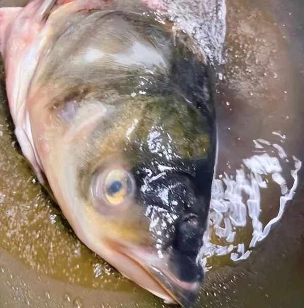 第一步,把魚頭劈開,裡外徹底洗幹凈,特別是魚鰓處,要多沖洗幾遍。