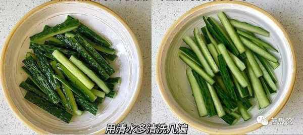 ②黃瓜醃制出水分,再清洗兩三次沖洗幹凈。
