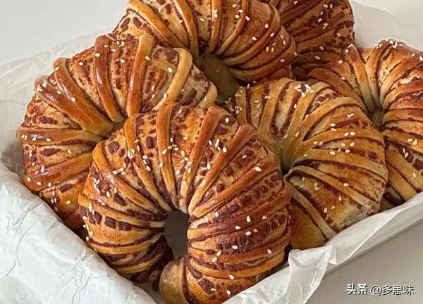 6、發酵好的面包胚,表面刷上蛋液,撒上白芝麻,送進預熱好的烤箱,中層180度18分鐘即可