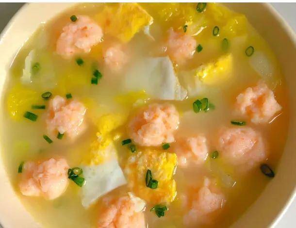 6、放入蝦丸繼續煮3分鐘,放入鹽和蔥花就可以啦!
