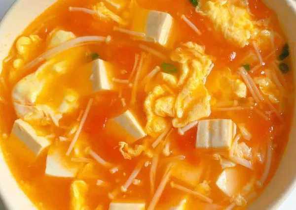 2、加入開水,放入切好的金針菇,美豆腐,煮5分鐘左右