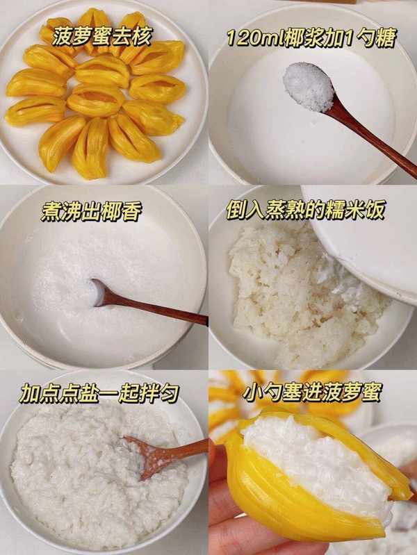 糯米500克、菠蘿蜜1個、椰漿適量、冰糖適量。