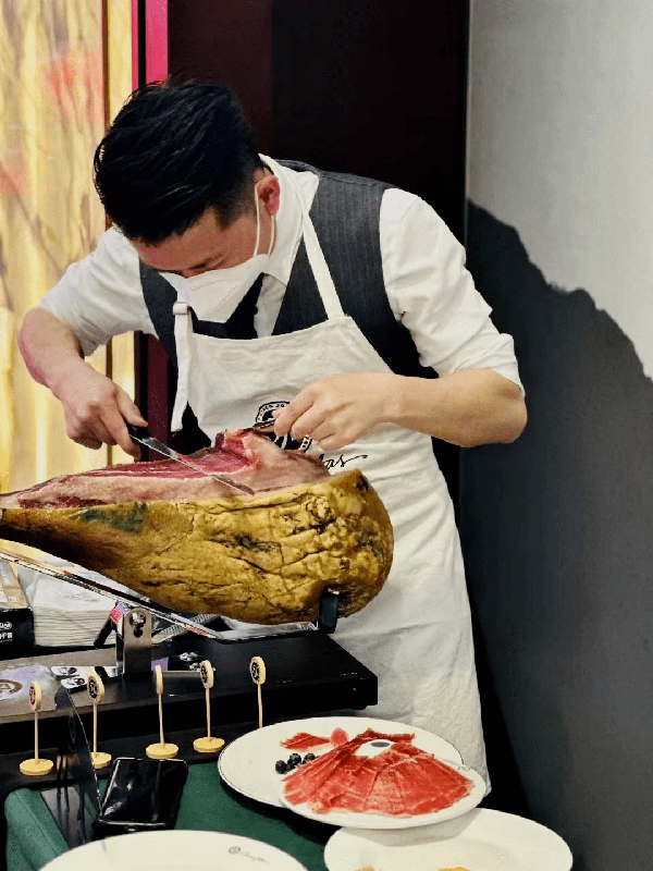 法國葡萄酒搭配伊比利亞火腿——現場專業切片處理