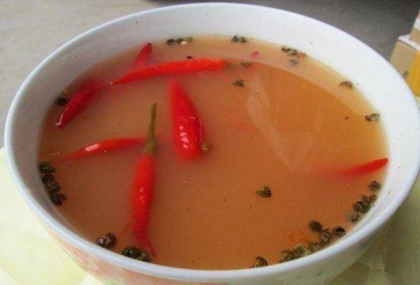 將用於醃制辣椒的罐子清洗幹凈,用白葡萄酒消毒,然後在陽光下曬幹。然後將薑片洗凈切片,鍋中倒入適量的水,大火燒開後,加入胡椒粉、冰糖和薑片,煮5分鐘後關火,加入適量的鹽和少許白醋。在餘溫下攪拌並冷卻。