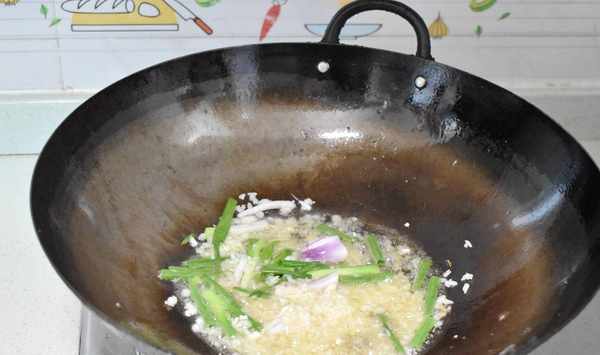 第四步小龍蝦用油炒後盛起,鍋裡餘下的油,爆香薑蒜蓉和蔥段。我比較喜歡多放一些蒜蓉,小龍蝦多一些蒜香氣四溢。