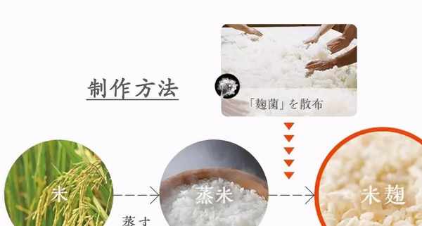 米曲甘酒,喝起來有點像甜米湯。它是一類大米發酵飲品,發酵它的菌種叫做米麹(ricekoji)菌,蒸熟的大米在55-60℃發酵15-18小時就變成瞭甘酒。③