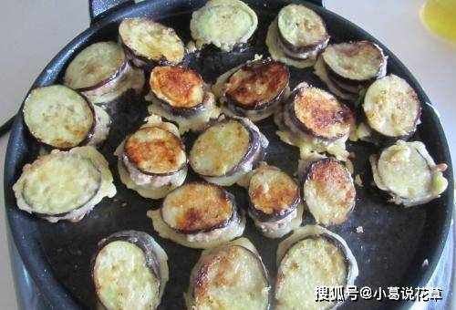 現在就可以開始煎茄盒瞭,先把電鍋燒熱,在鍋底刷上一層底油這樣一滴油都不用放,然後把準備好的茄盒放進去。面糊使面糊均勻把茄盒包起來,然後把茄盒一個個放在電烤盤上,保持中小火,把茄盒炸到兩面金黃。
