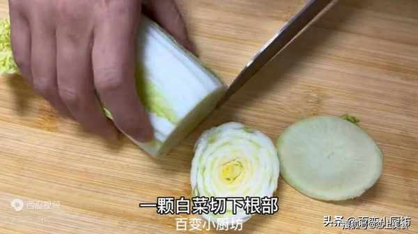 下面就跟著視頻一起來看看是怎麼做的吧。地裡拔一根白蘿卜切下根部,一顆白菜切下根部,四根香菜切下根部,切的時候稍微留一點葉子在上面,然後把這三種蔬菜的根部放到一個大盆子裡。
