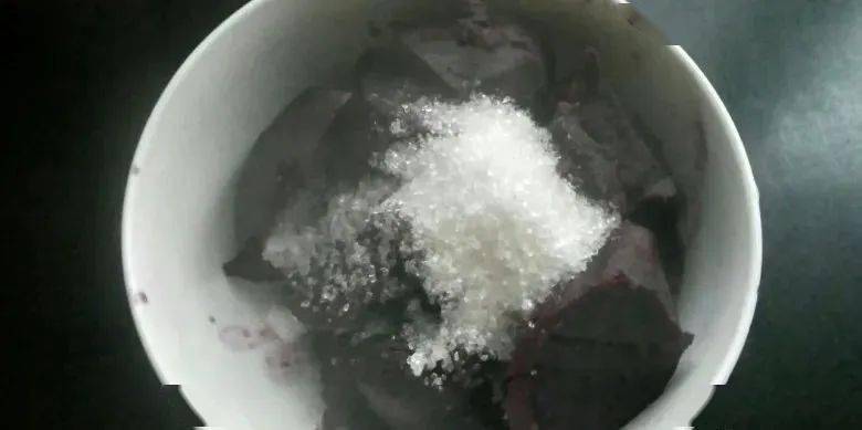 5. 蒸熟後取出,放白糖,用飯勺壓成泥。