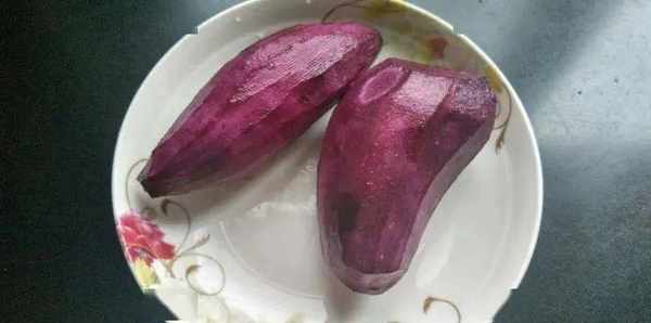 紫薯兩個,糯米粉150g,面粉50g,芝麻適量,白糖適量,食用油適量