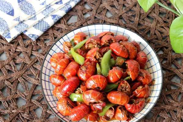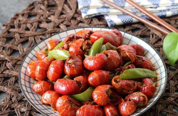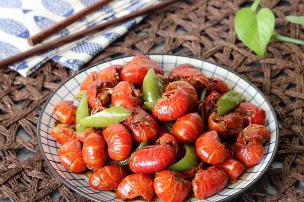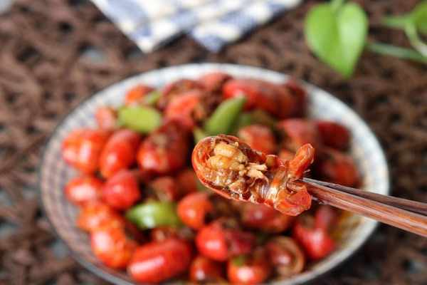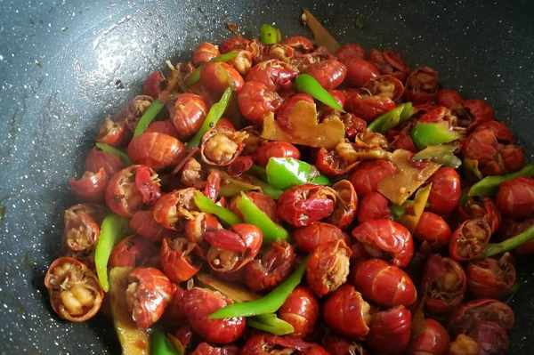 放入焯過水的小龍蝦尾翻炒幾分鐘,按照傢人的口味加一點鹽調味。