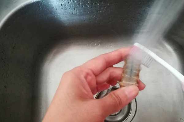 原本是想用牙刷來刷蝦尾的,結果刷瞭幾個,好累啊,果斷放棄瞭。