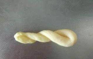9、做好的麻花像個小胖子,可以揉的更細一些。