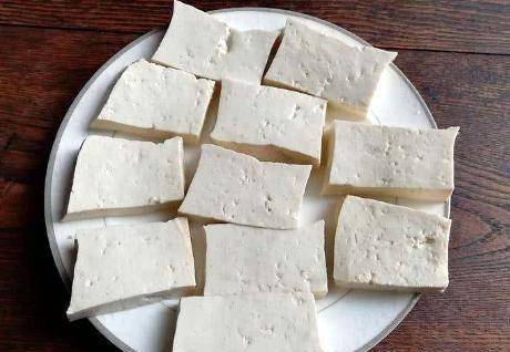 制作過程:第一步是將老豆腐用清水沖洗幹凈。過水後,豆腐切成片,碗裡放少許面粉,蓋上切好的豆腐塊和膠水,兩面均勻包好。一層薄薄的面粉;
