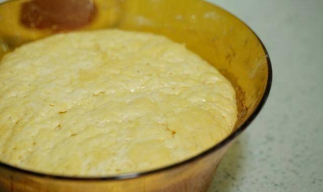 1.首先準備意大利面。用半杯溫水,不燙手,先溶解泡打粉,再加入玉米粉和面粉拌勻,再加入雞蛋再次拌勻。然後蓋上保鮮膜,放在陰涼處靜置30分鐘左右。也可以晚上把面團做好,放入冰箱冷藏,第二天早上用。