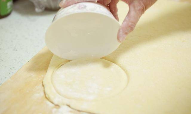 4.小妙招來瞭!怎麼做圓餅?其實很簡單。取一個傢裡經常用的皮薄的小碗,把面團壓緊,用碗邊搟一下,很容易切開。並切一個非常簡單的小圓餅!