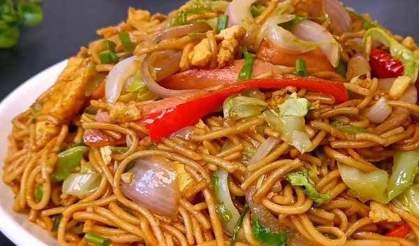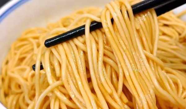 5.燒一鍋熱水,放入面條,煮熟後撈出過冷水,瀝幹水分,加入蠔油、生抽攪拌均勻備用。