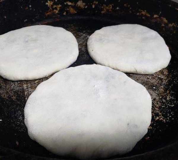 第11步、平底鍋燒熱,放入餅胚。