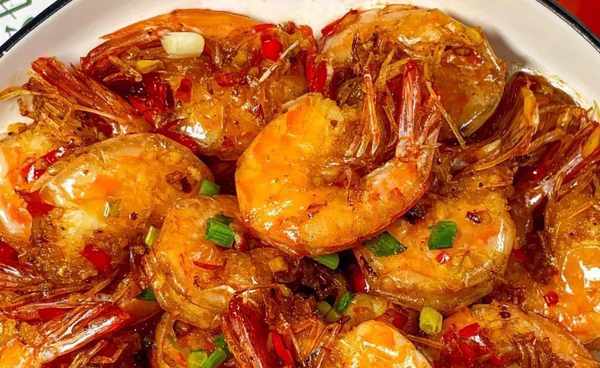 2.起鍋熱油,下蝦炸至兩面金黃酥脆後撈出,鍋留底油,下薑蒜、小米辣爆香,倒入大蝦翻炒。