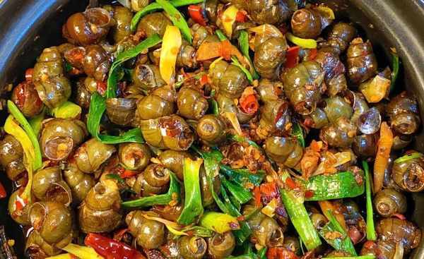 食材:嗦囉、啤酒、小米辣、蒜蓉、薑片、大蒜葉、幹辣椒、火鍋底料
