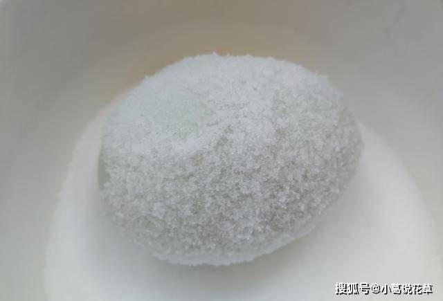 4、然後放入鹽中,滾一圈。這樣,鴨蛋表面就染上瞭鹽粒。