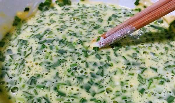 2、因為韭菜和雞蛋本身都很鮮美,所以不用額外加味精等調料,適量鹽調味即可。