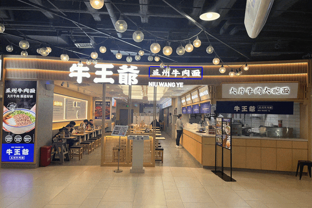 牛王爺首店在2021年12月10日,於青島合肥路永旺廣場開業,1個月後,2022年1月26日,在青島開設瞭二店。作為新興品牌,在最初,牛王爺也采用瞭拉面師傅現場制面模式。然而,沒過多久,牛王爺這兩傢營業額卻出現瞭階段性波動。