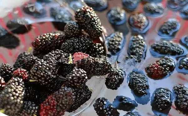采摘回來的桑葚,一定要及時放入涼白開當中。或者是純凈的礦泉水也可以,這樣可以保證水質的幹凈衛生。如果是直接用自來水裡的水管的話,不幹凈衛生吃進嘴裡容易鬧肚子。