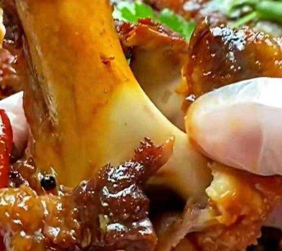 【原材料】棒骨1斤、蔥薑片適量、料酒適量、麻椒少量、桂皮2個、辣椒適量、大薑2片、啤酒一罐、大棒骨醬汁。