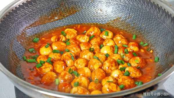 出鍋前撒點小蔥花,好吃的糖醋鵪鶉蛋就做好瞭。