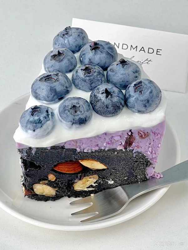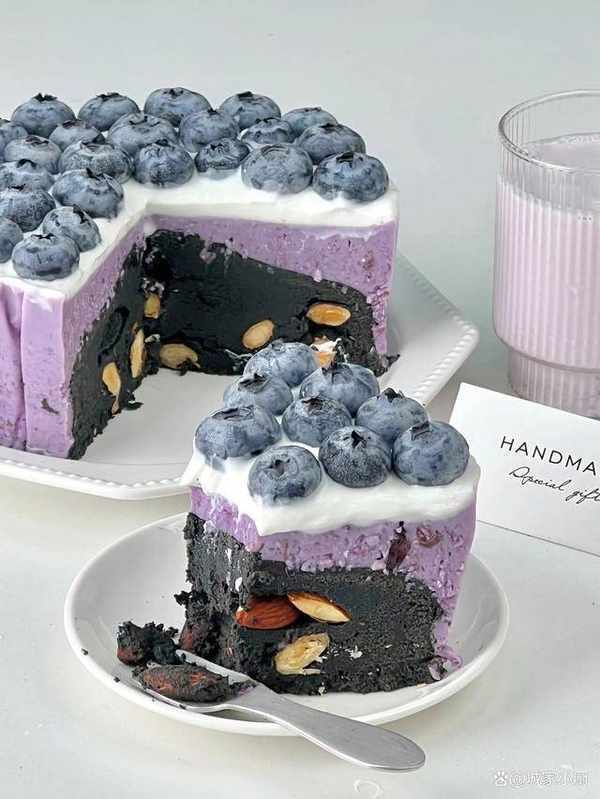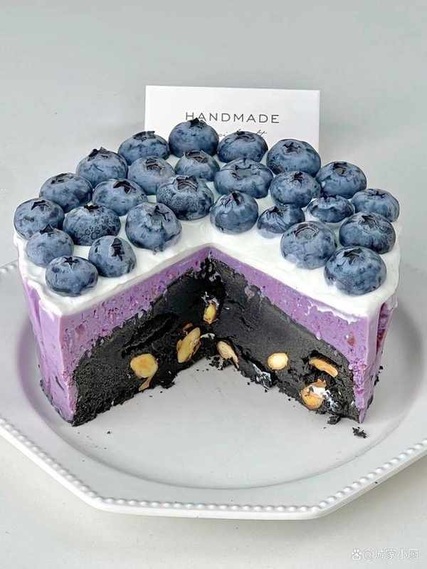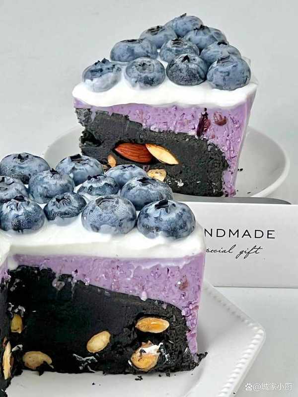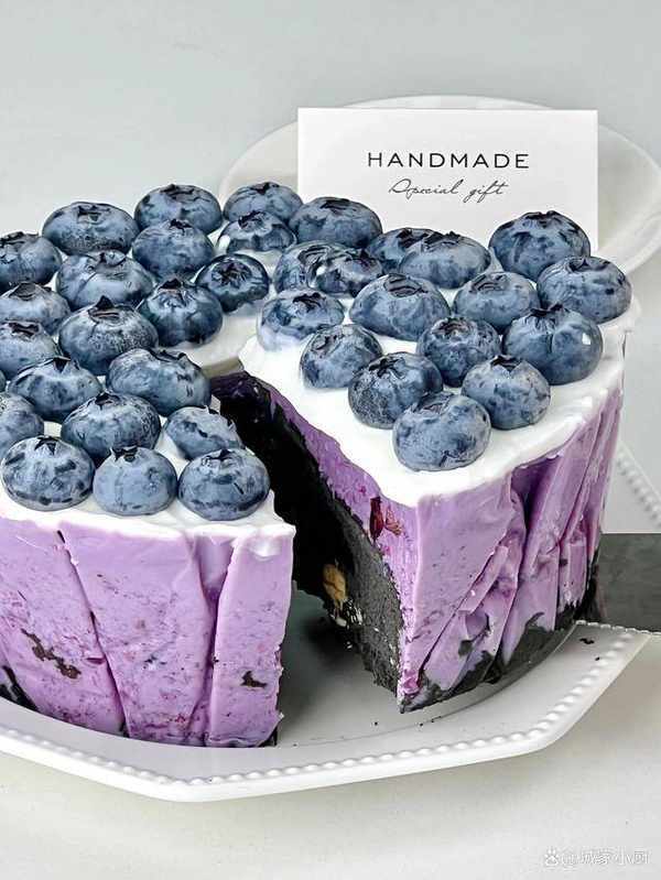 加入藍莓醬拌勻,倒入裝有冷卻的蛋糕上,放入冰箱冷藏4個小時後,表面抹上希臘厚酸奶,擺上藍莓裝飾即可。