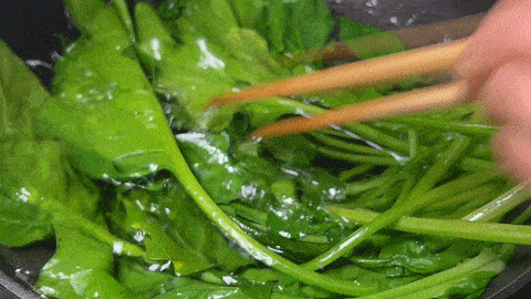 3. 燒一鍋開水,加入食鹽和植物油,給洗凈的菠菜焯水