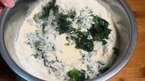 4、 花卷隻加食鹽和芝麻香油,這樣不會蓋住發面香味和菠菜的清香