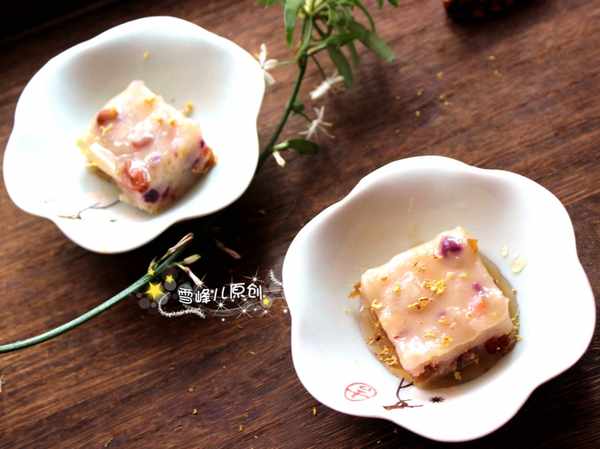 桂花糕就是其中一種。南方到了新稻穀收割,吃上新米之後,再加上新鮮採摘的桂花,就做成了美味的桂花糕,桂花米糕就成了中秋節必吃的一道美食,寓意富貴吉祥!