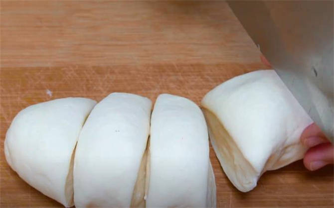 2.揉光滑之後放在案板上,搓成長條,切五個面劑。