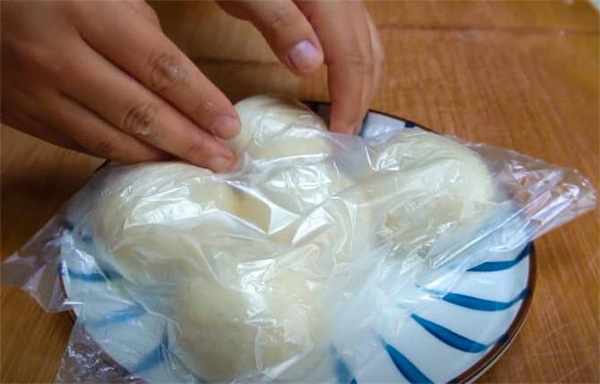 3.把每個面劑都在手心團一下,盤子裡刷一層薄油,把面劑子放進去,四周都裹上油,蓋上保鮮膜餳上最少一個小時。