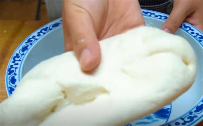 1.準備300g的面粉,2g鹽增加面粉的筋性,160毫升的溫水和面,攪成面絮之後,再加20毫升的食用油,這樣面團會更柔軟一些,揉成光滑的面團。